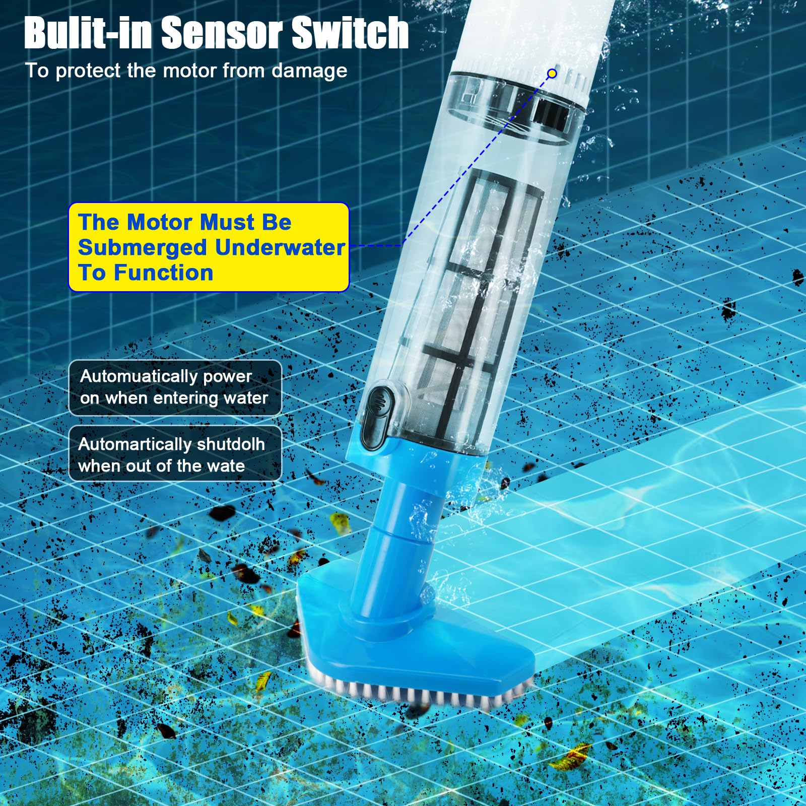 Built-in Sensor Switch: Automatically powers on when submerged; auto-stops when lifted to protect the motor and save battery.